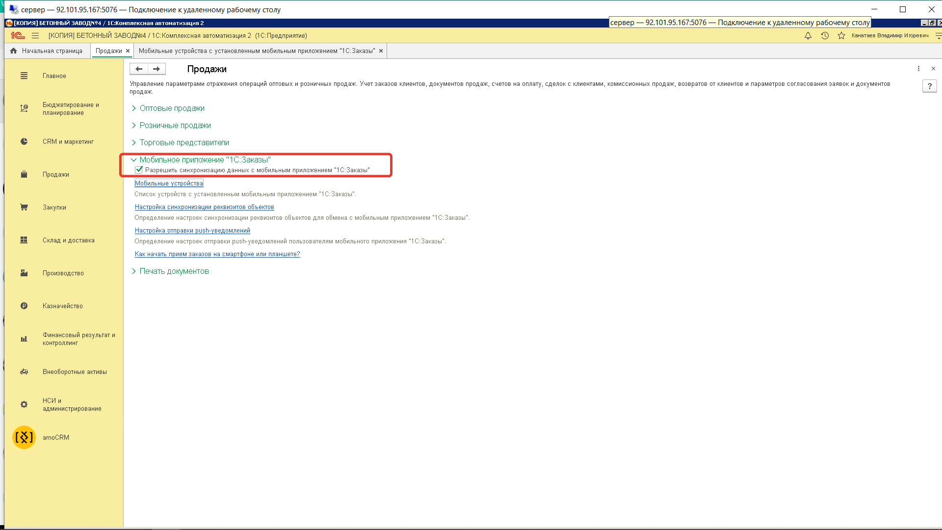 Помочь настроить работу мобилного приложения 1С Заказы в Комплексной автоматизации 2.4