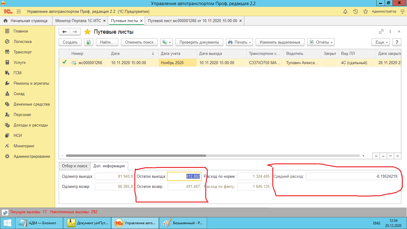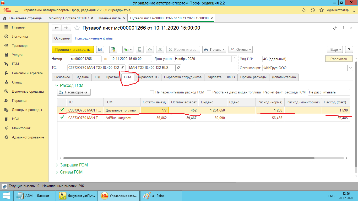 Во вложении принтскрины: Журнал путевых листов, при выделении строки внизу заполняются поля: Остаток ГСМ выезд/возврат, Средний расход, Расход по норме/факту. Все это заполнять из ТЧ - ГСМ (см 2-ой принтскрин), но только строкой с топливом (там встречаются прочие жидкости, пример на принтскрине). Топливо это или нет можно понять перейдя в справочник данного Транспортного ср-ва, оттуда Модель, там поле Основное топливо. Задач до НГ еще много