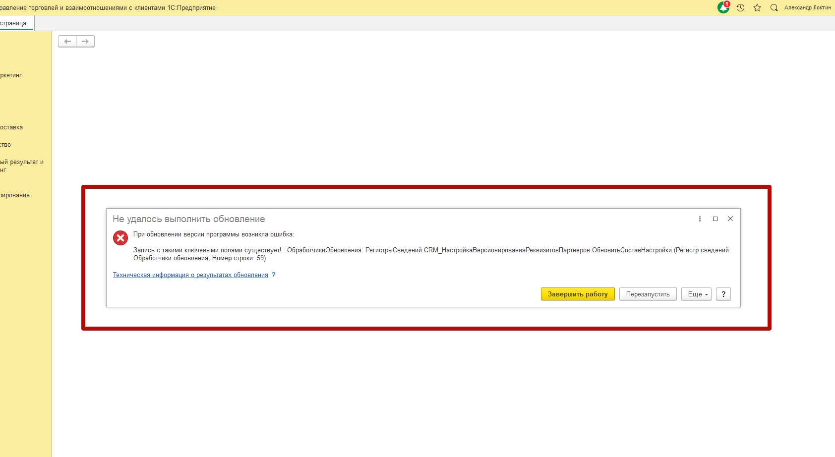 Ошибка при обновлении ут до ут+crm