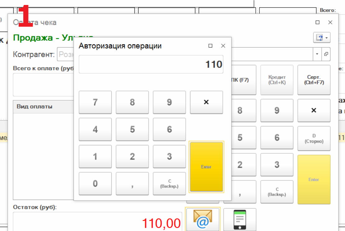В приложенных файлах на экране (1) отображается окно авторизации операции. Необходимо его убрать (или нажимать автоматически Ентер с задержкой какой-то), чтобы продавец видел на экране сразу же экран (2) в приложенных скриншотах.