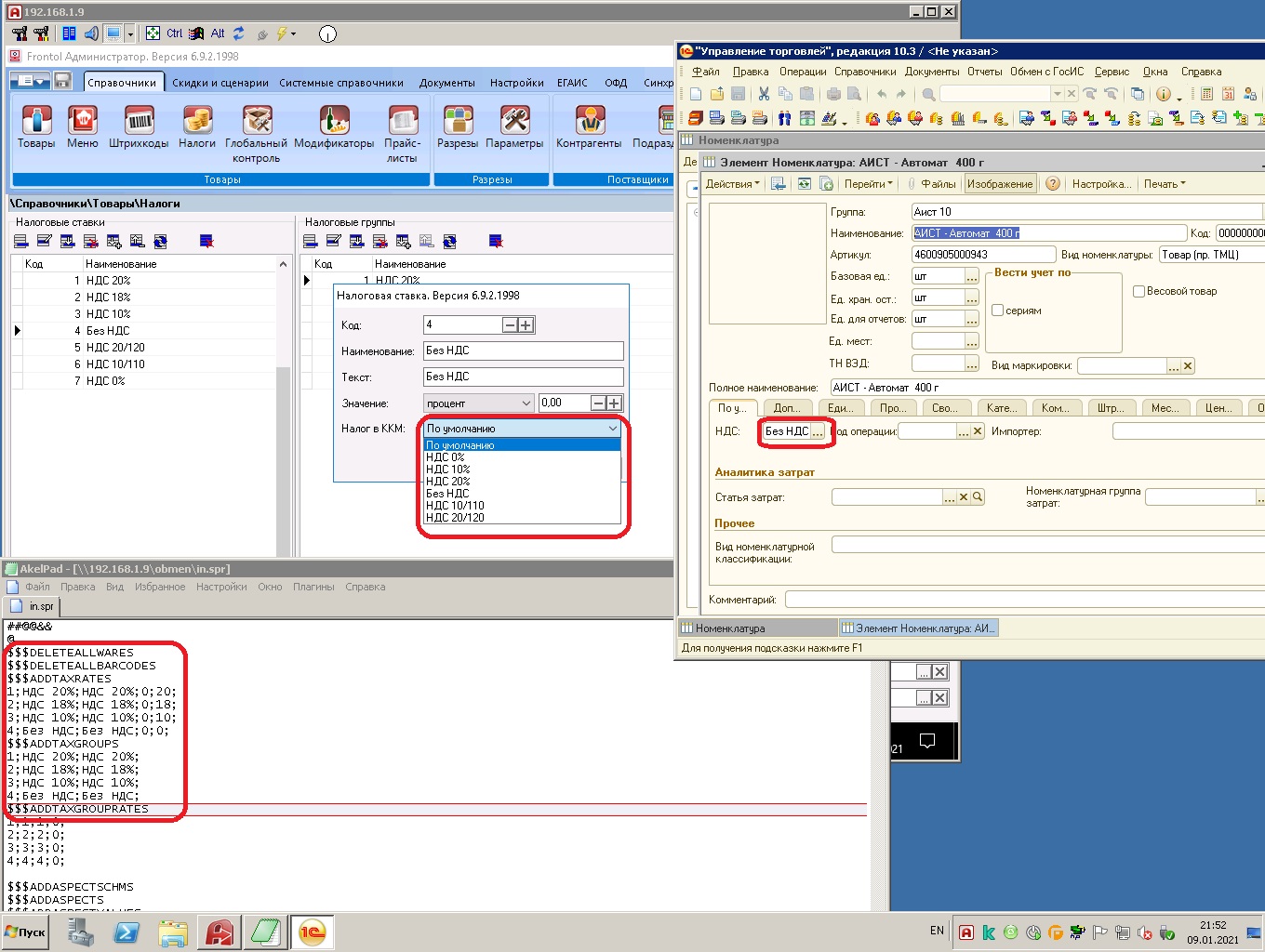 Требуется до настроить обмен между УТ10 и Фронтол 6. При загрузке номенклатуры слетает налоговая ставка по умолчанию.