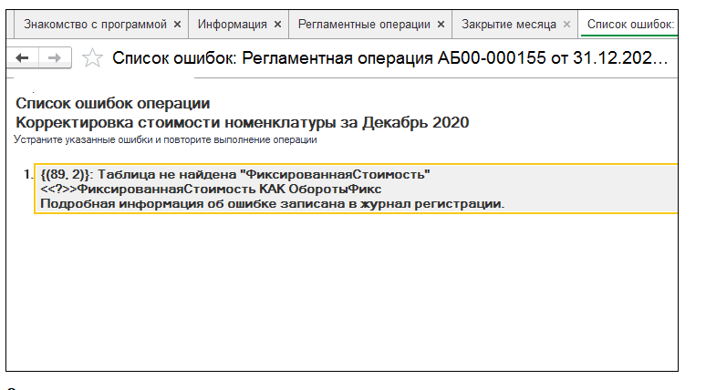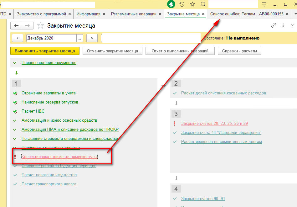Выявить причину ошибки и исправить при регламентной операции Закрытие месяца