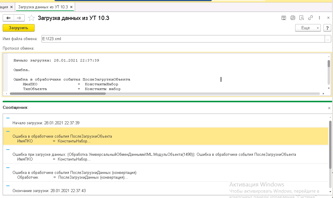 Не работает загрузка данных из файла XML в УНФ выгруженного из УТ 10,3