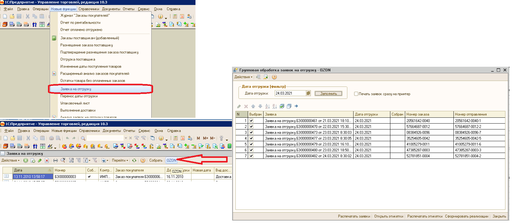 2. Добавить функцию печати реестра во встроенную групповую обработку заявок на отгрузку - см. вложение.