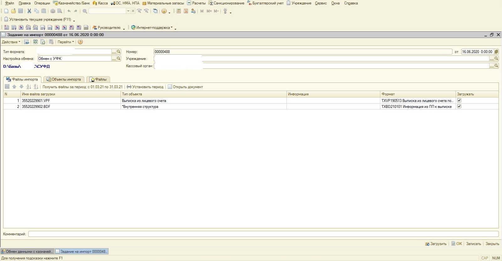 Загрузка происходит через обмен с казначействами