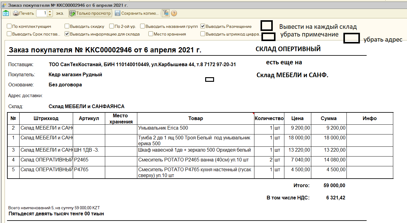 В компании появились отделные секции на центральном складе. Для удобства работы сборщиков необходимо из одного заказа покупателя, в котором установлены размещение ТМЦ по разным складам формировать печатную форму, которая бы печатала отдельные сборки на каждый склад.