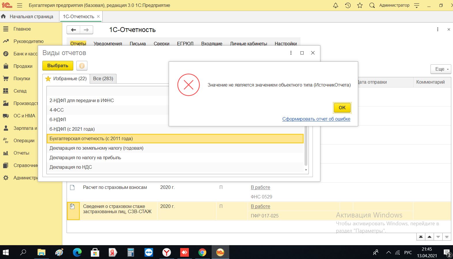 Не формируется форма отчета баланс предприятия выдает ошибку