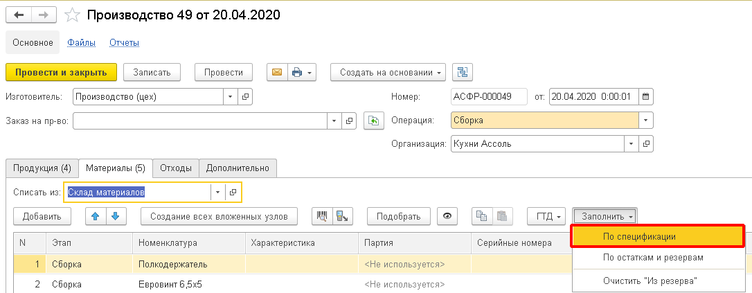 Требуется разработать расширение, для УНФ (1.6.24.172), которое будет дополнять стандартную процедуру нажатия кнопки "Заполнить по спецификации" в документе "Проиводство" (см. скриншот).