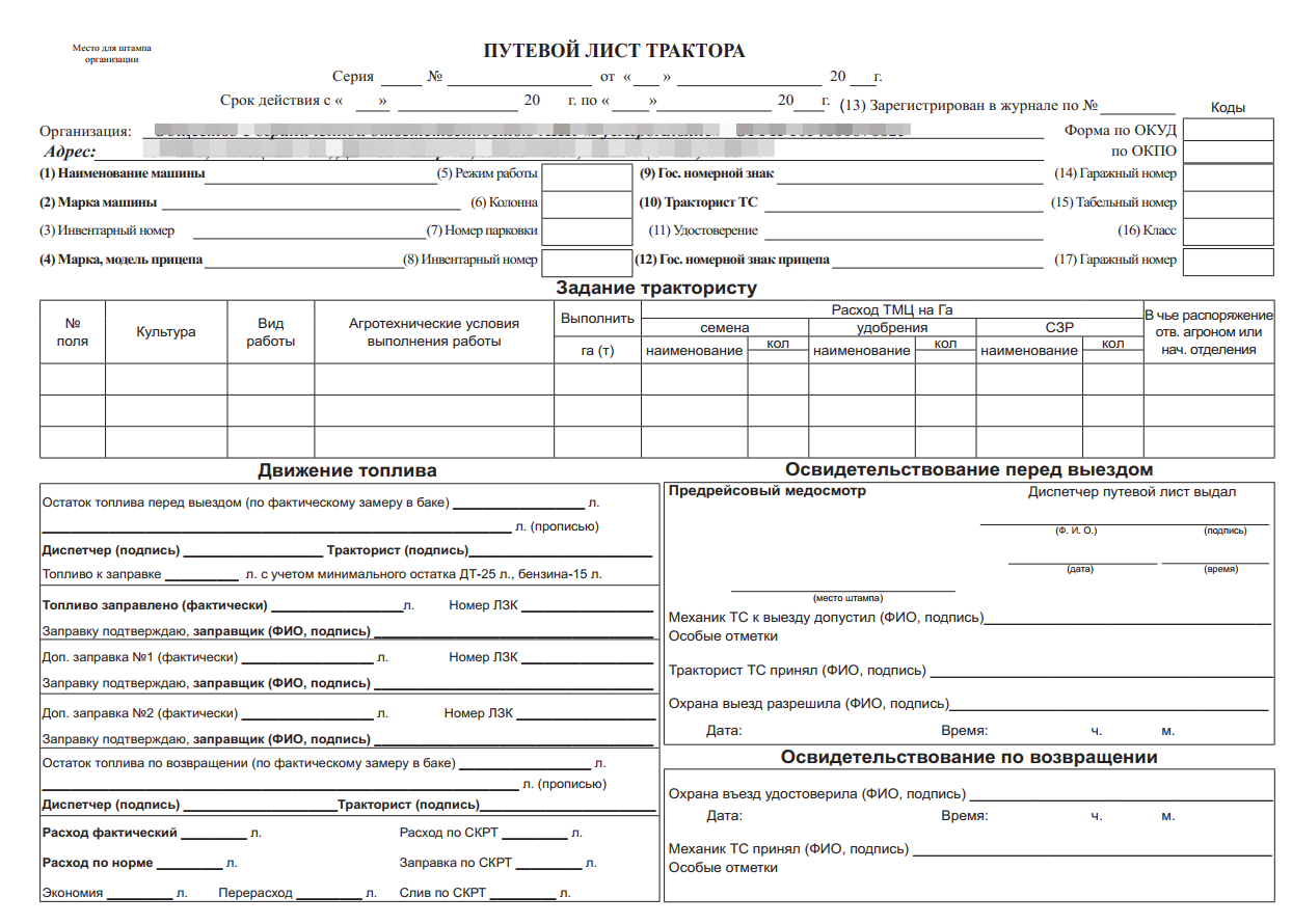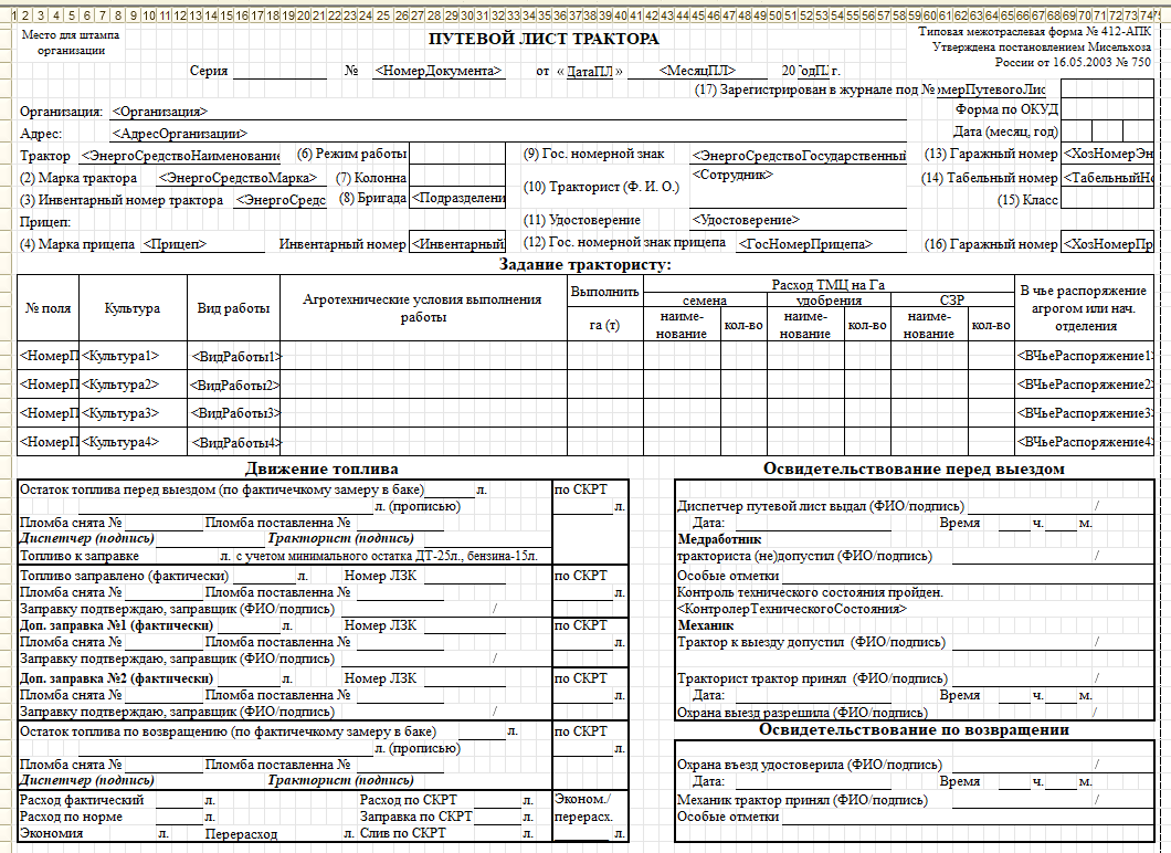 Изменить макеты печатных форм путевых листов (4 шт.)