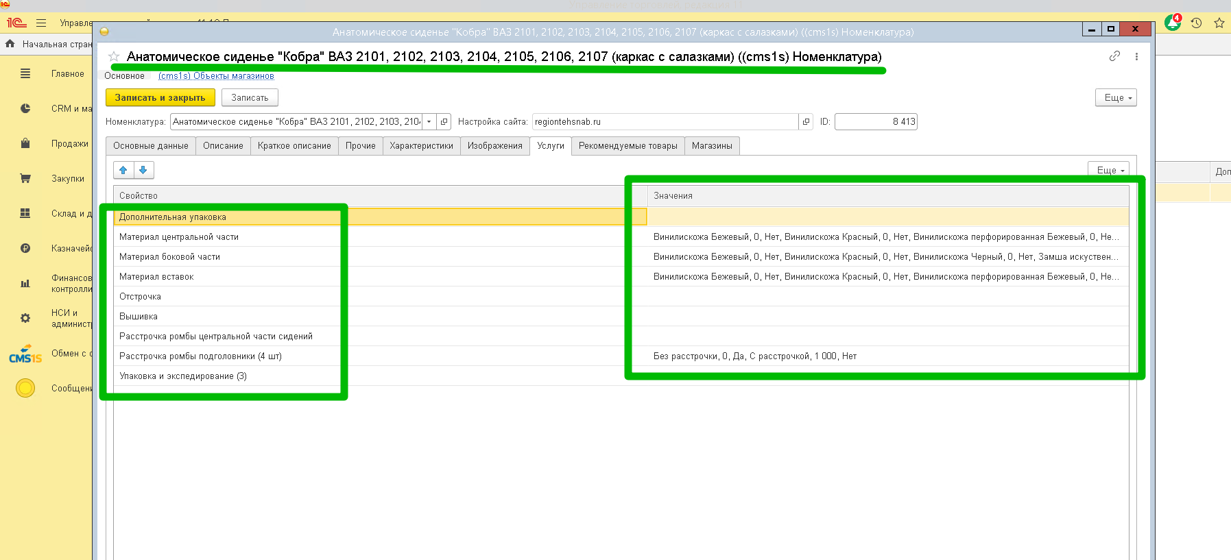 в cms1с доработке существует дублирующий (посредник в обмене между 1с и сайтом) справочник товаров на сайте в нем и привязаны все услуги, характеристики и т.д.