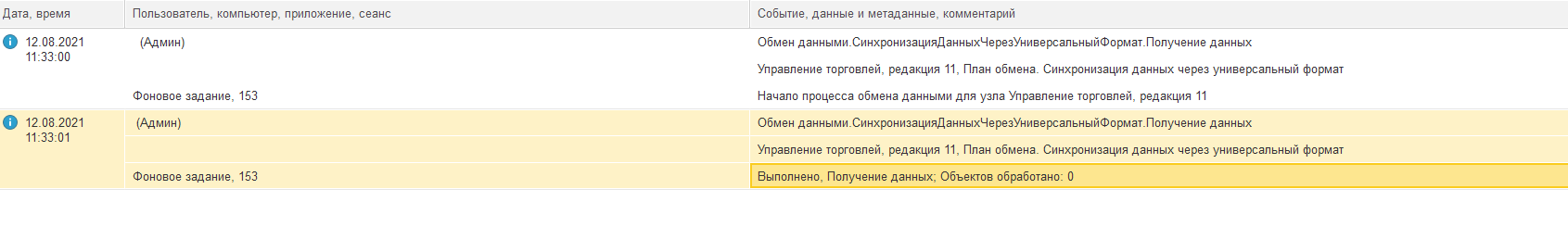 Обмен был реализован по принципу: Выгружается только используемая нормативно-справочная информация из УТ в БУХ. Обратный обмен отключен, так как весь учет ведется в УТ. Обмен настроен через сетевой каталог. Из УТ данные регистрируются к обмену ( и кажись даже выгружаются), но в БУХ они не принимаются. Никаких предупреждений не выводится. При просмотре журнала регистрации выходит сообщение что «нет транзакции».