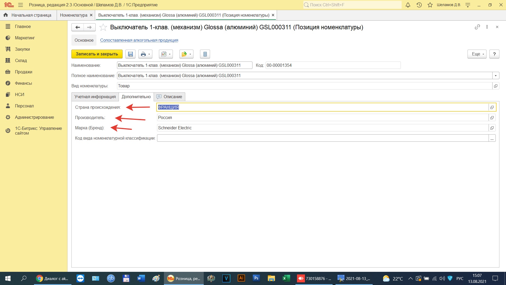 Добавить в выгрузку поле артикул товара, код товара, страна производитель, марка бренд, остатки товаров и отображение на сайте.