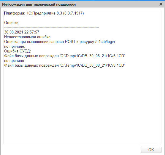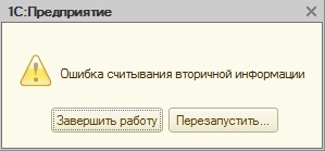 Ошибка при входе в базу 1С8: "Ошибка считывания вторичной информации"