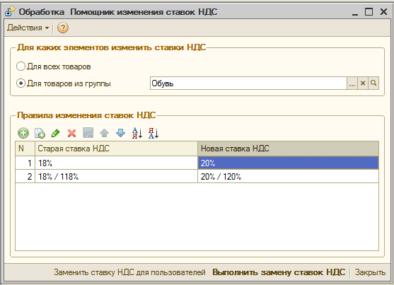 Адаптировать обработку пакетного изменения ставок НДС