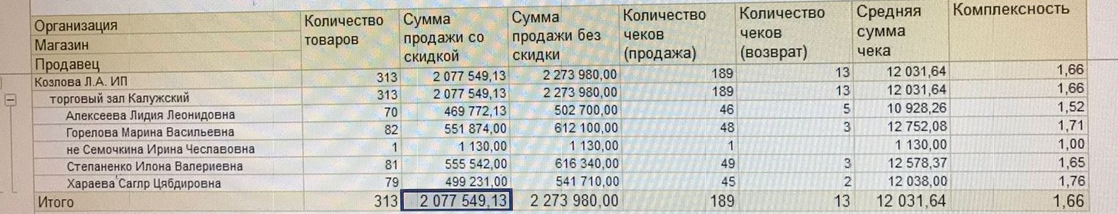 Нужен отчет для продавцов