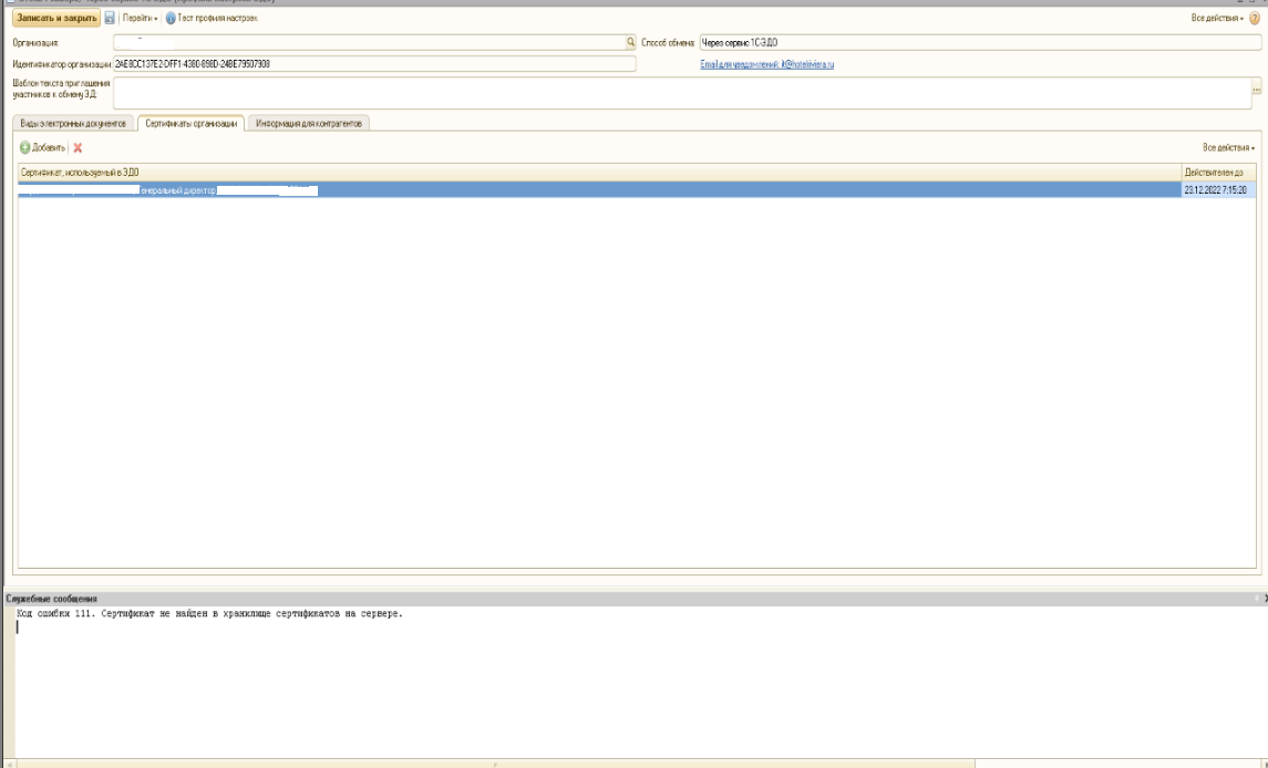 Ошибка при обновлении сертификата ЭДО в БП 2,0