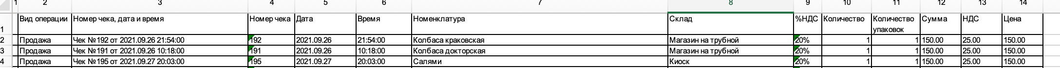 Необходим ВО по розничным продажам пример прикрепил. Конфигурация типовая последний релиз. Расположение колонок и их содержание как в примере.