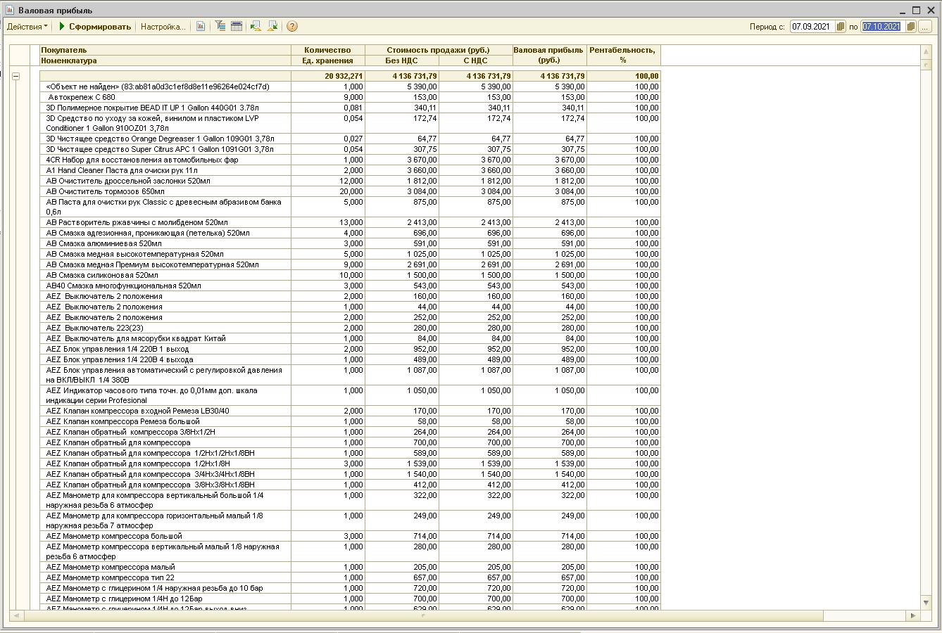 Починить отчет Валовой прибыли