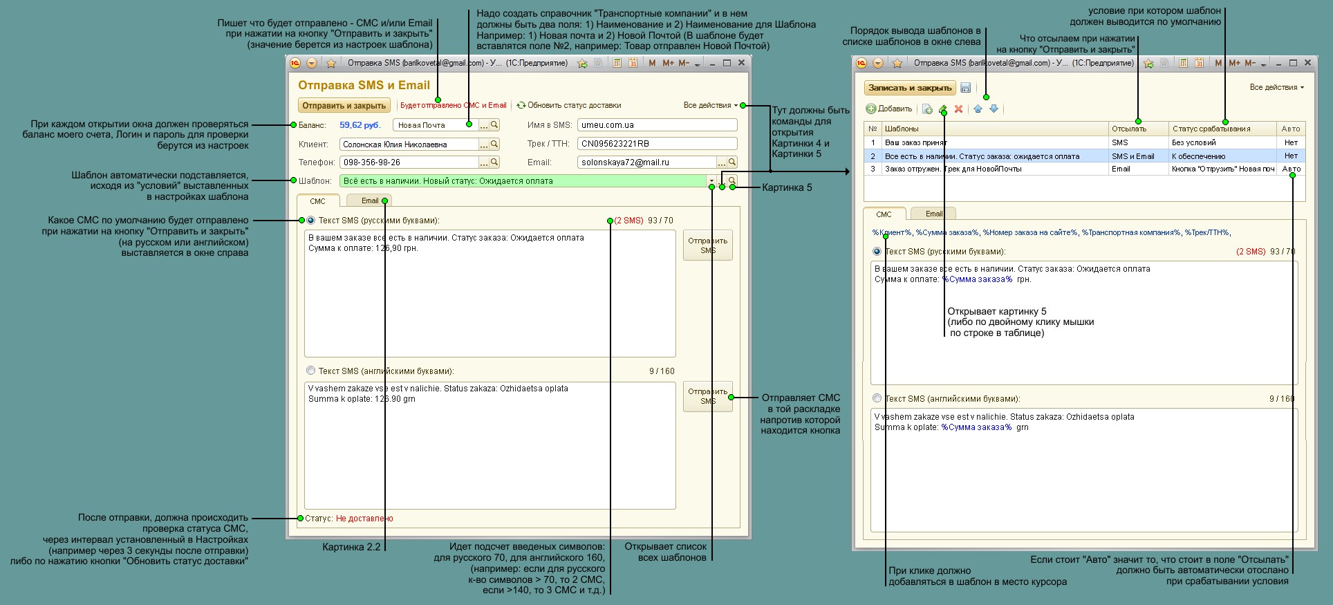 Картинка Отправка СМС и Email (картинка 2.1 и 2.2)