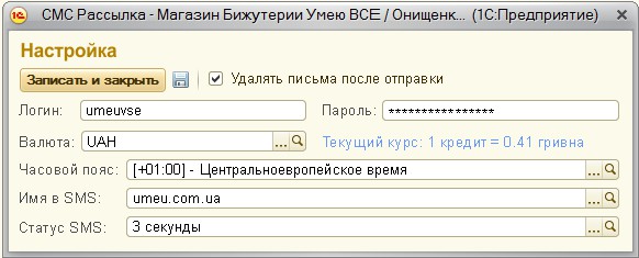 Отправка СМС будет реализована через шлюз сайта http://epochtasms.ru/