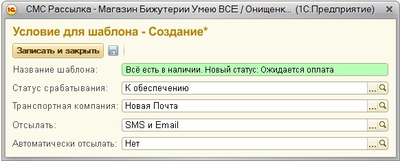 - Сделать проверку было ли уже отправлено смс для данного заказа по какому-то из событий, и если было, то повторно автоматически не отправлять (например при изменении товаров, перепроведении документа или еще по какой-то причине из-за которой отправка СМС может сработать повторно), но независимо от этого можно нажать на кнопку СМС и повторно отправить сообщение по любому шаблону.