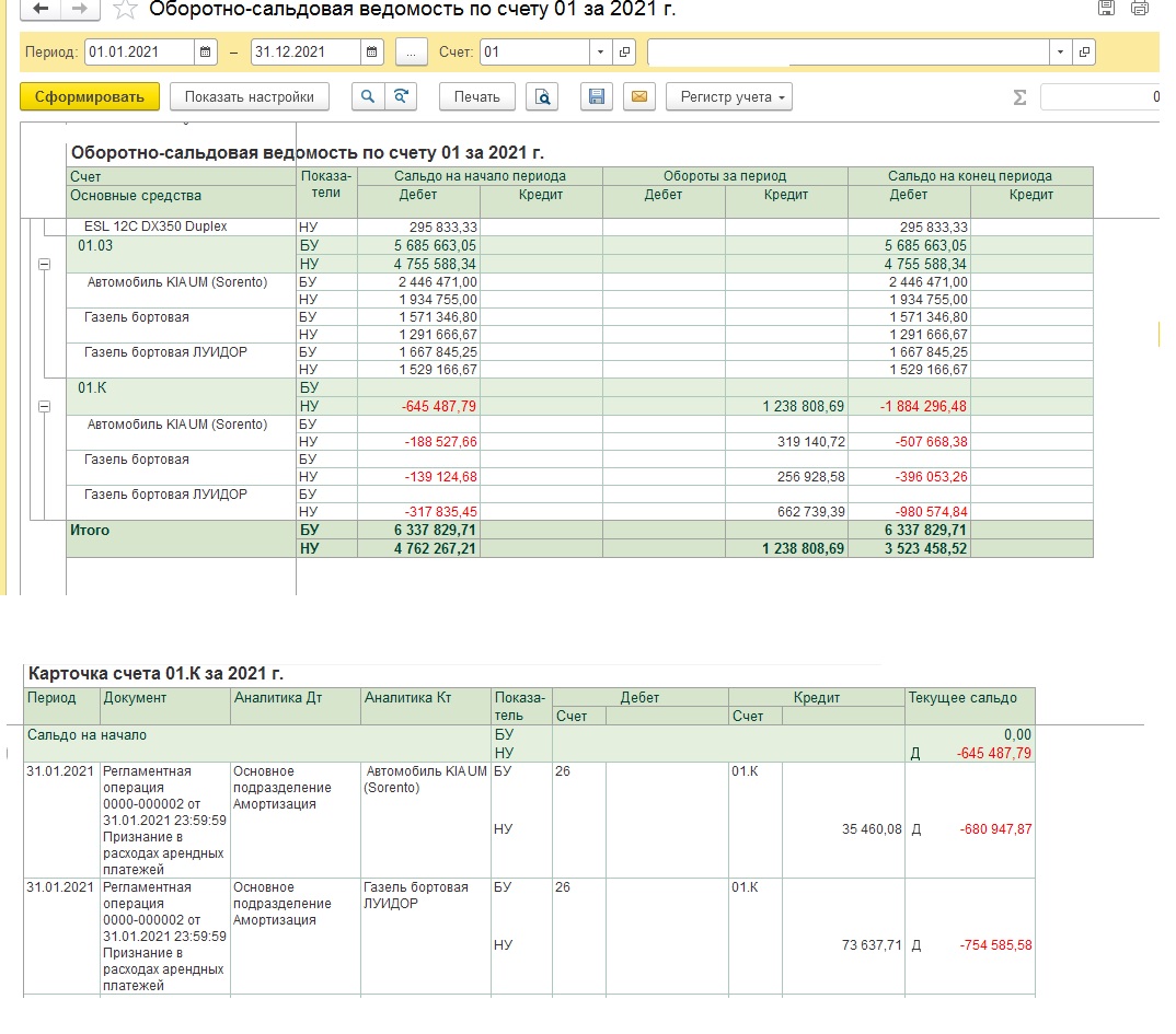 В оборотке отрицательное сальдо (скрин во вложении) по счету 01.К (Корректировка стоимости арендованного имущества - налоговый учет)