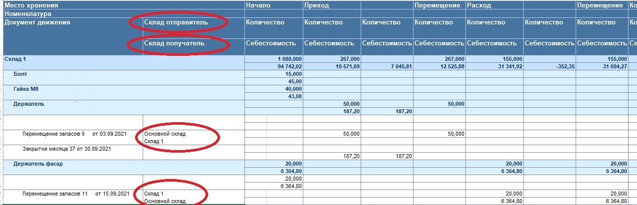 В стандартном отчете "движение товаров" в разрезе перемещения отобразить склад отправитель, склад получатель, чтобы можно было понять с какого склада пришел товар