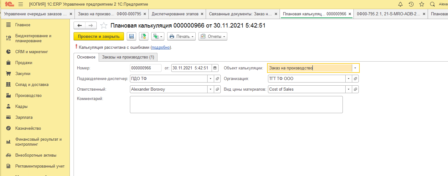 Разобраться с печатной формой Плановая калькуляция в 1с ERP