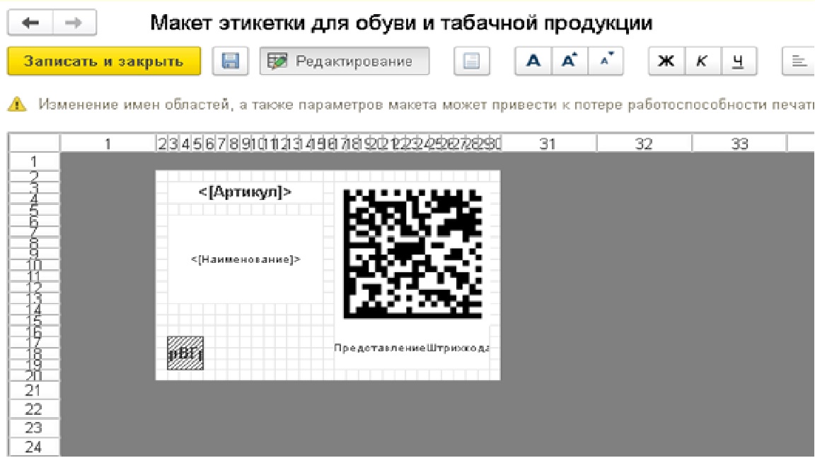 В макете «Макет этикетки для обуви и табачной продукции» нужно добавить 1 поле текущая дата. Дата берется с ОС так как нужно периодически ставить дату завтрашним числом. Либо создать внешнюю печатную форму.
