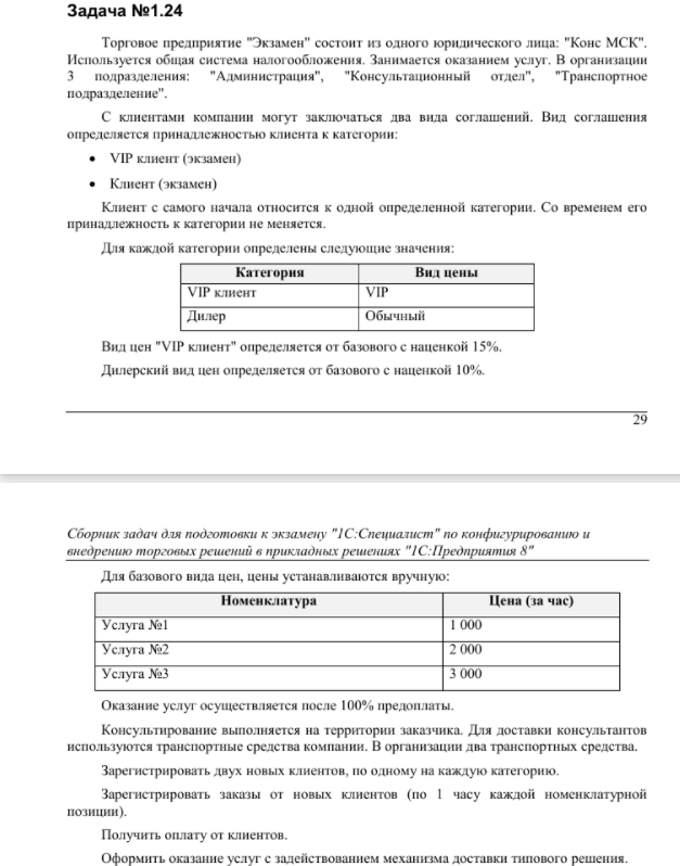 Здравствуйте, прошу помощь с решением задачи из сборника задач для подготовки к экзамену \\\'\\\'1С Специалист\\\'\\\'. На выполнение дается 1.5 дня, текст задачи в файле, заранее спасибо.