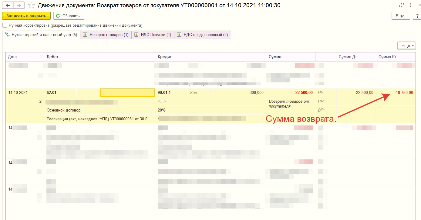 Бухгалтерия предприятия, редакция 3.0 - не добавляется возврат в декларацию НДС