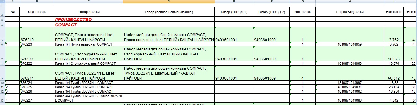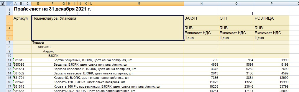 Дописать обработку загрузки из Эксель номенклатуры, цен и упаковок.