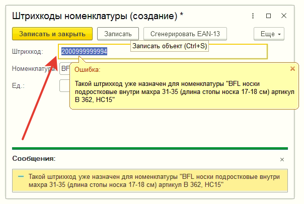 При создании штрихкода для номенклатуры, генерируется уже созданный (один и тот же) штрихкод.