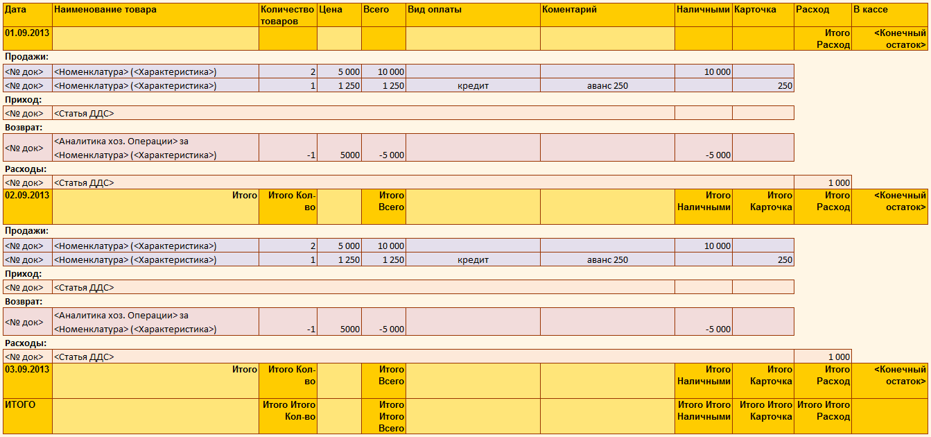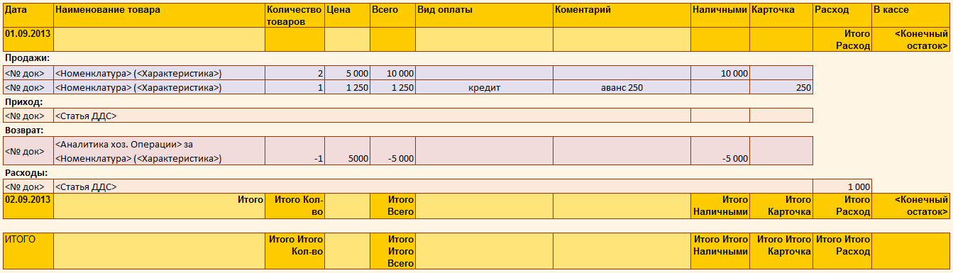 Требуется создать дополнительный отчет по финансам с названием "кассовая книга".