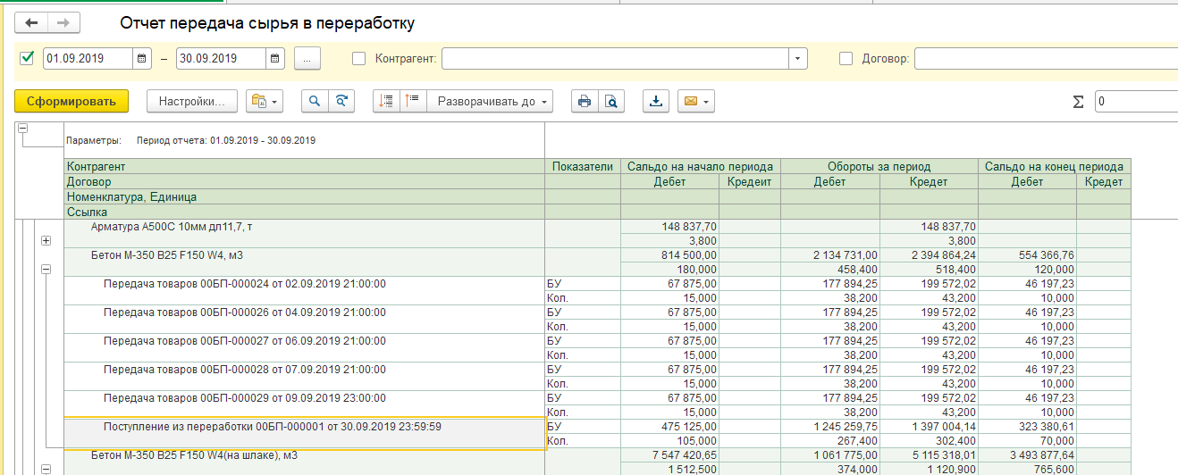 По счету 10.07 аналитика Контрагенты/Номенклатура. Нужен отчет, который бы показывал остатки и обороты как ОСВ плюс детализация по документам движения за период. Скачал походящий отчет на инфостарте, но в нем неправильно показывается информация по документам движения - оборот по Контрагенту/Номенклатуре проставляется в каждую строку документа движения и всё это суммируется в итог. Также не все документы попадают в отчет.