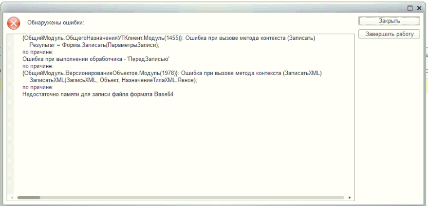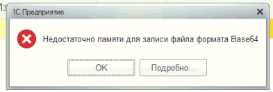 УТ 11.4 - ошибка при установки цен номенклатуры: недост. памяти для записи файла формата Base64