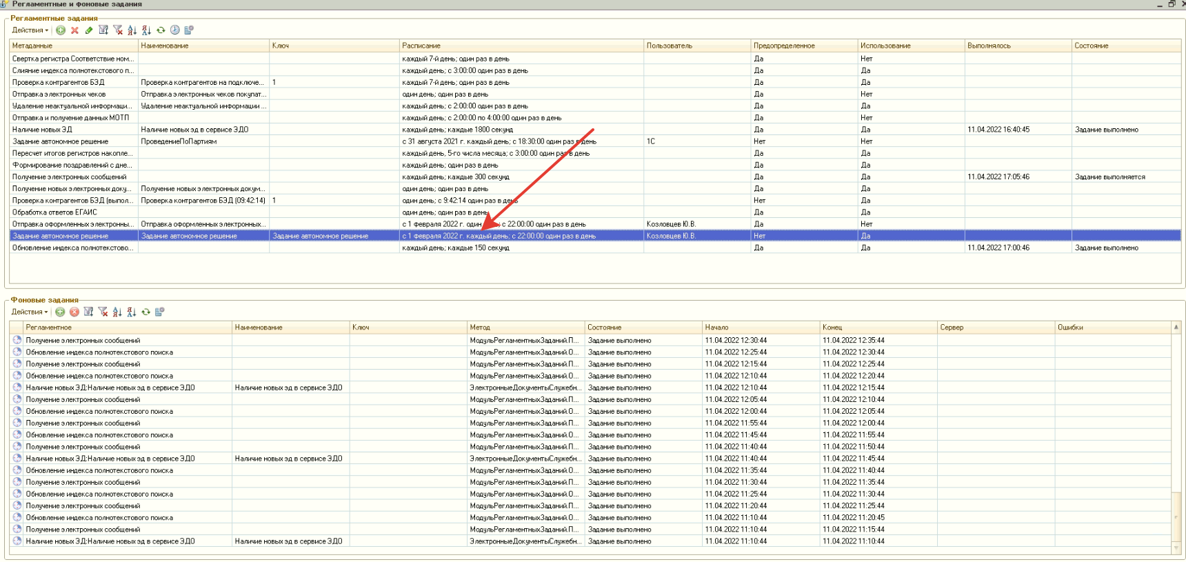 Есть регламентированное задание, которое в 22:00 партийно проводит документы. В этот момент появляется ошибка и закрывает 1с: