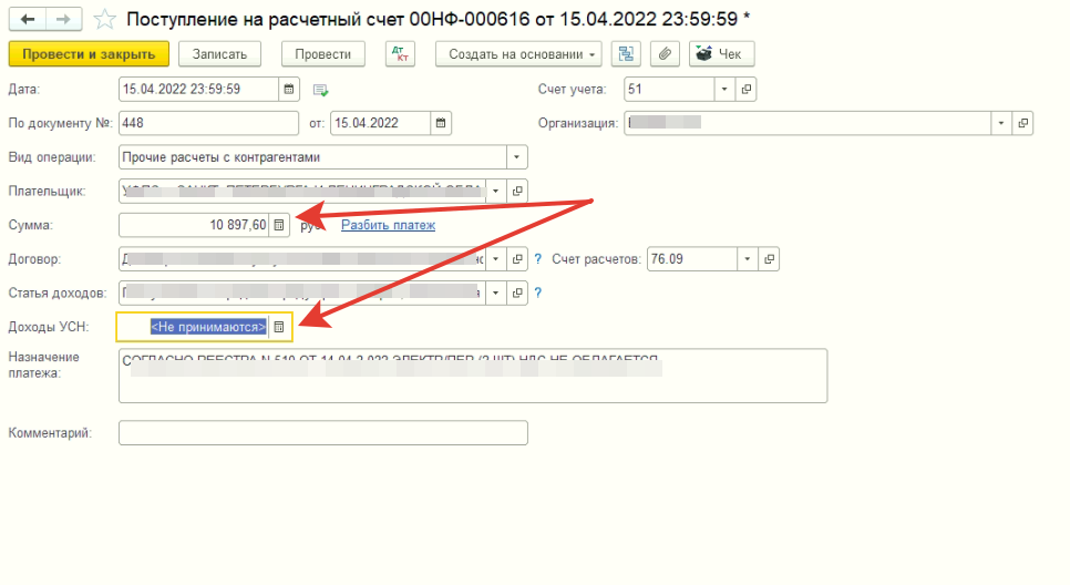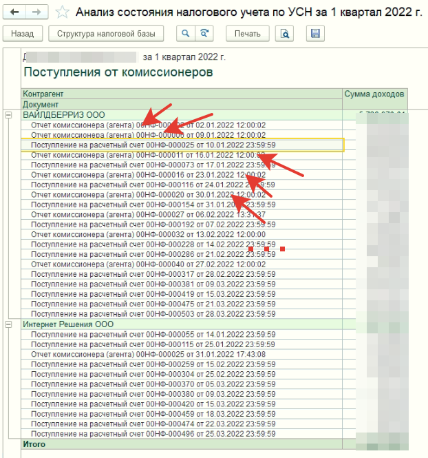 1) Из УНФ в Бухгалтерию выгружаются документы поступления на р/с. Раньше все работало, но в какой то момент в Бухгалтерии, в документах поступления, сумма перестала переносится в окно "Доходы УСН", раньше сумма отображалась.