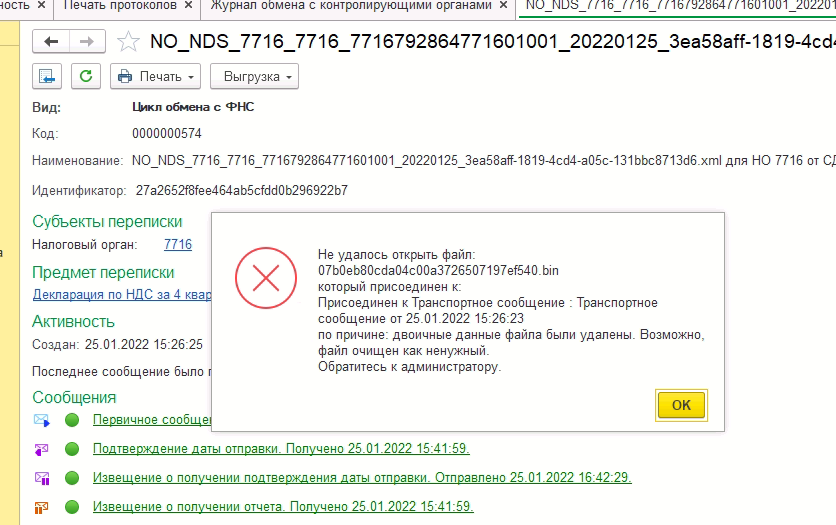 При выгрузке контейнеров деклараций, появляется ошибка (прикреплена). Переносили базу, но на прошлой базе так же ошибка.