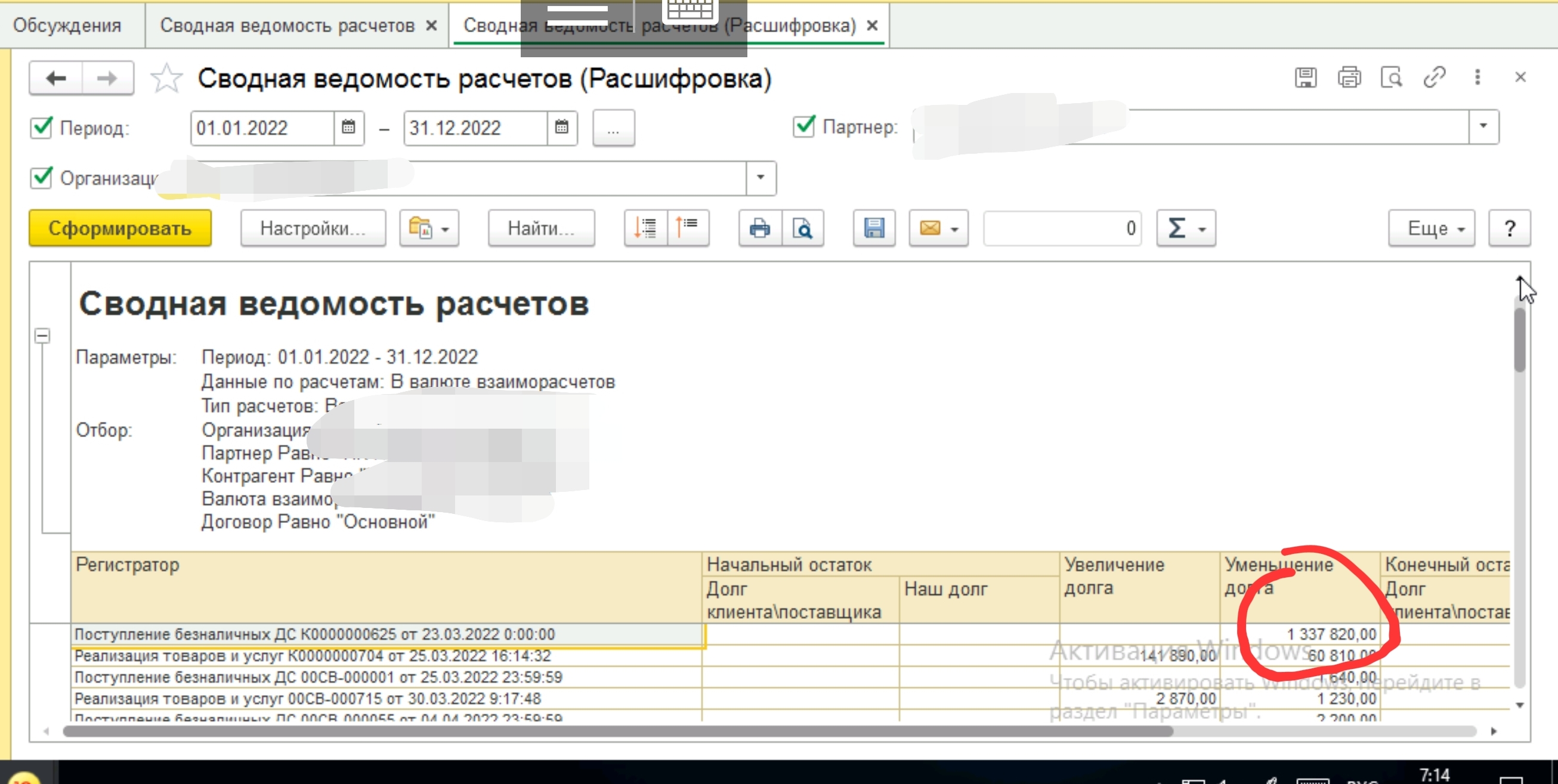 Требуется разобраться с отчётом Сводная ведомость расчётов.
