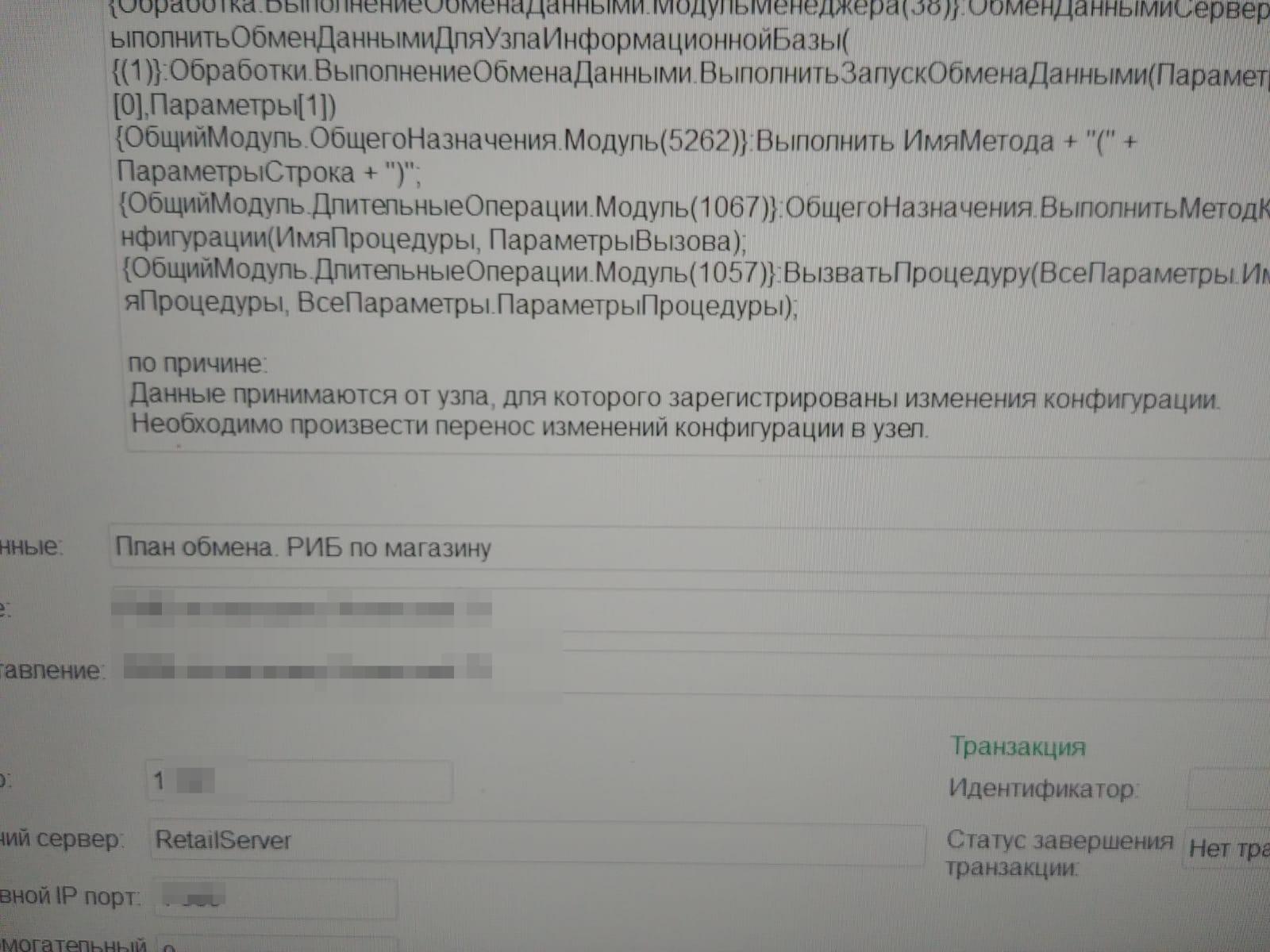 Обновили центральный узел. Но на РИБ обновленная конфигурация не прилетает. Т.е нет обменов между главным узлои и магазином.