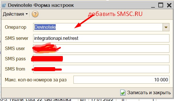 1. добавить smsc форме настроек