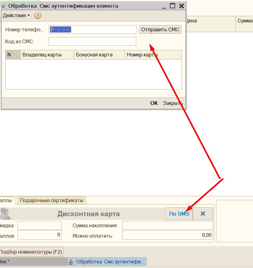 Есть настроенная авторизация смс для доступа к бонусным картам devinosms