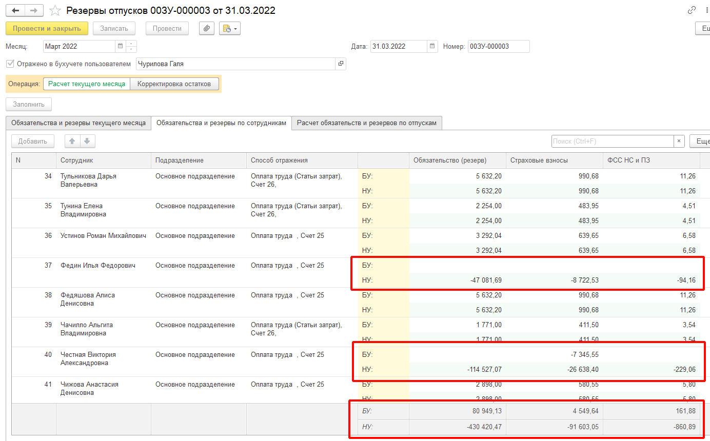 Не совпадают цифры БУ и НУ по резервам отпусков. Скриншот во вложении.
