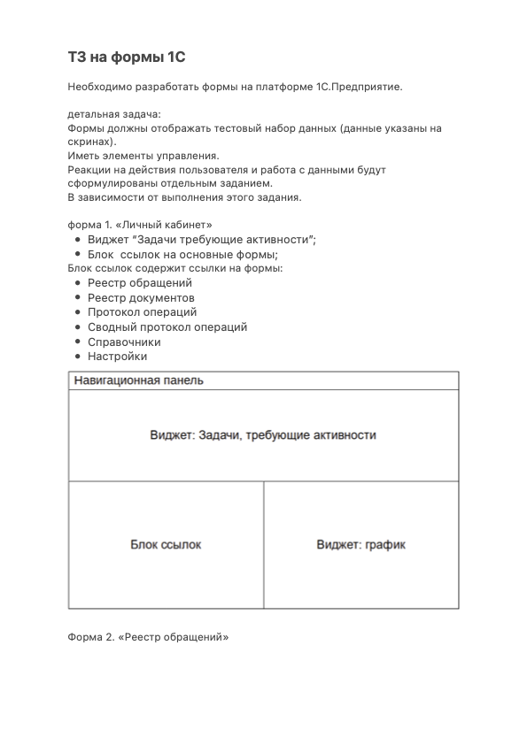 ТЗ прикрепил файлом с описанием форм.