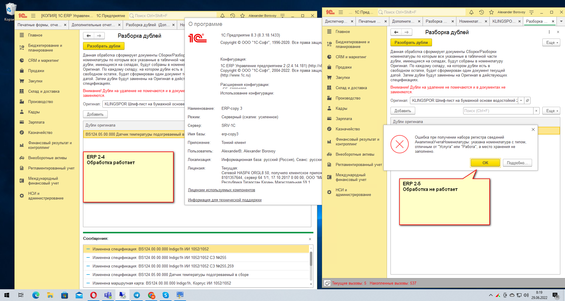Необходимо исправить внешнюю обработку, которая работала в ERP 2-4, но перестала работать после обновления в ERP 2-5