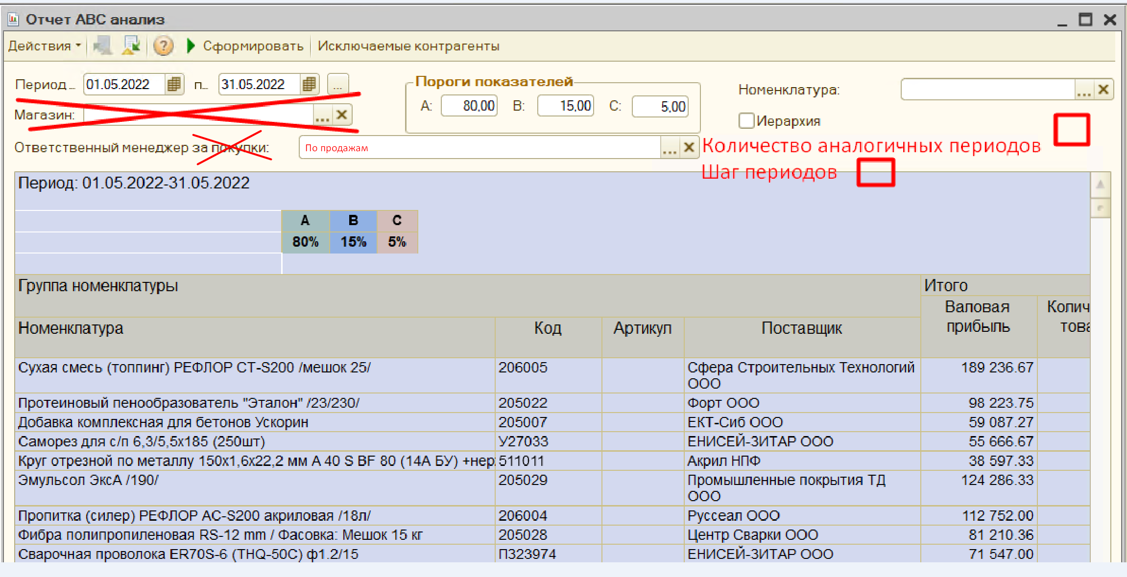 Есть отчет АБЦ анадлиз