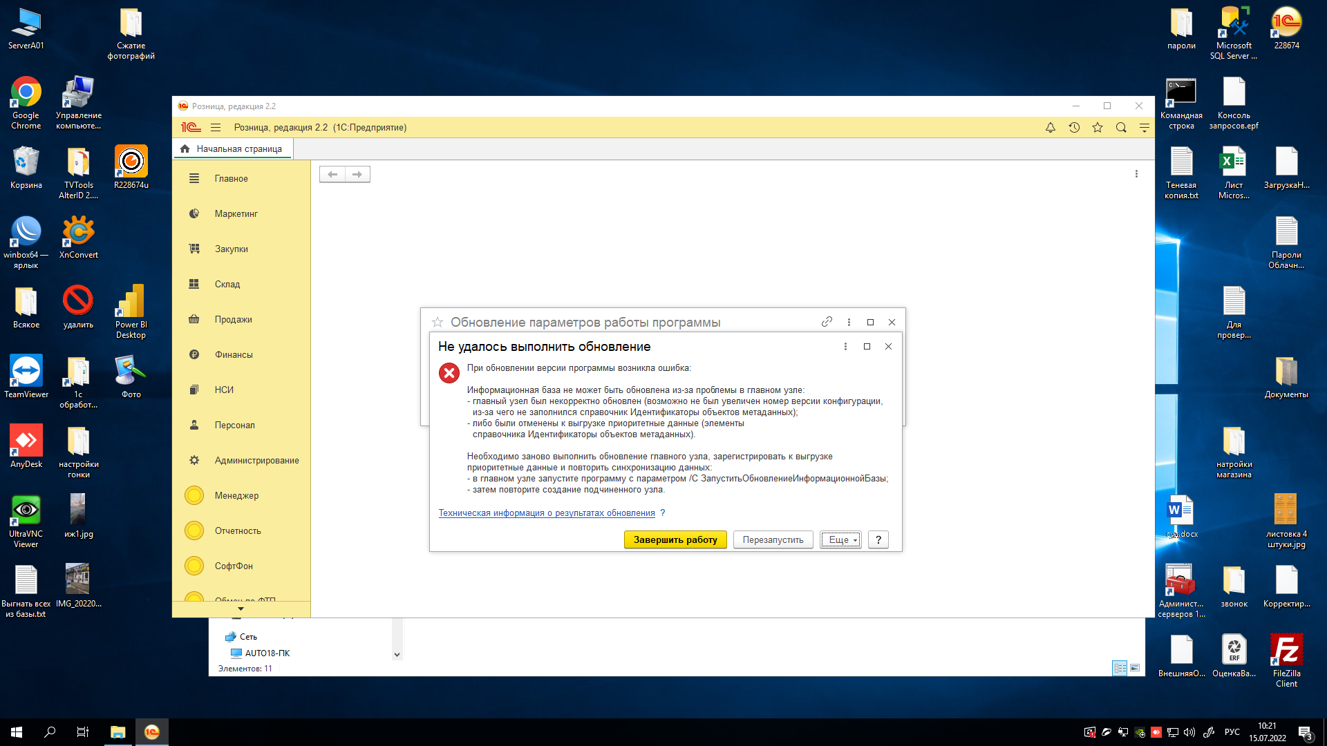 Создал магазин, обмен, делаю создание первоначального узла риб. Через 4 часа Узел РИБ успешно создан - сообщение. при попытке открыть базу. ошибка.