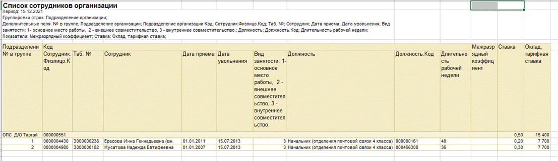 Требуется разработать новый отчет (либо настройку одного из типовых отчетов) «Список работников организации (проверка окладов/часовой тарифной ставки)»