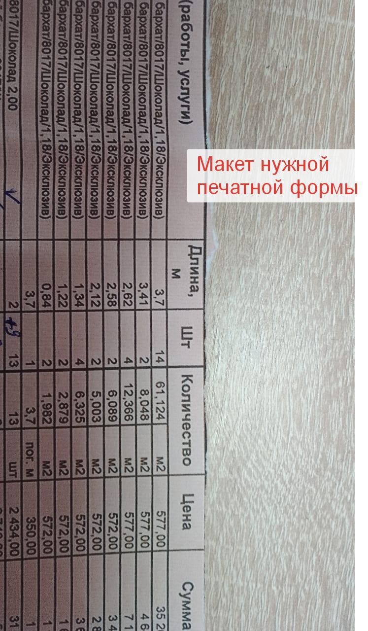 В печатную форму "Заказ покупателя", нужно вывести только две колонки: "Длинна" и "Штуки".